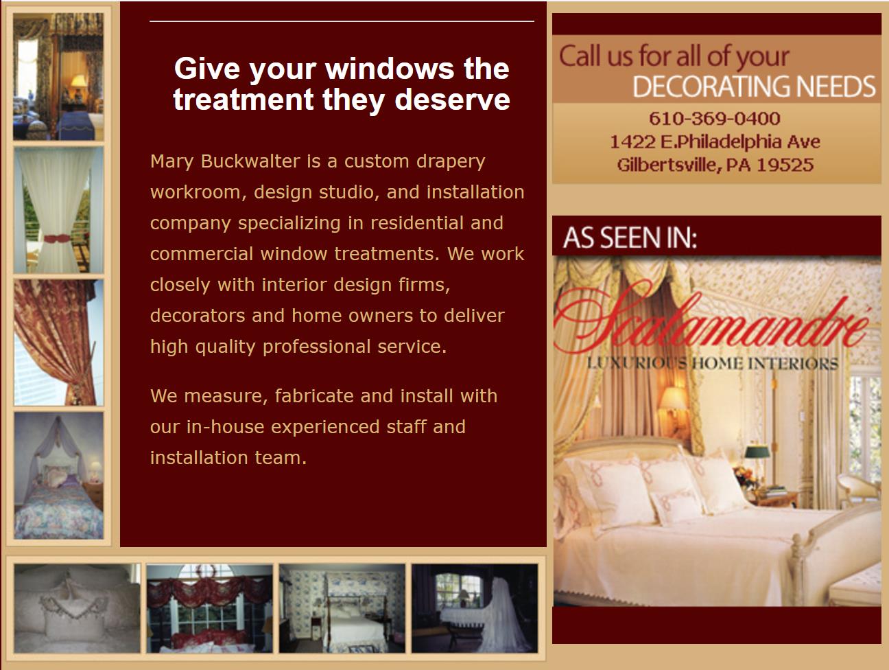 When it comes to interior design, there's only one name you need to know - Mary Buckwalter Custom Interiors. We work directly with interior design firms, decorators, and homeowners to deliver the best service and experience you won't receive anywhere else.